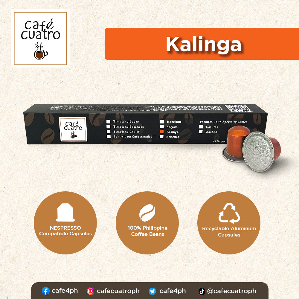 cafe4ph KALINGA ROBUSTA Coffee Pods in Aluminum Nespresso-compatible Capsules (10 pods)